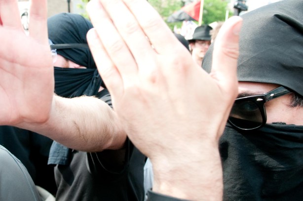 Quickly after the presentations ended, riot police moved in to clear the streets. They moved in to split the crowd into manageable sections. Bottles and sticks flew through the air towards the police as punches and batons were swung at the citizens. As the pockets of protesters shrank, the resistance became more passive and eventually evolved into police and demonstrators staring each other down over long rows of barricades. A national news reporter was broadcasting an exaggerated account of the violence and was quickly shouted down by the nearby demonstrators. The crew moved away to record their version in peace.